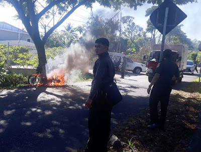 MINAHASA UTARA – Telah terjadi kebakaran satu unit sepeda motor merk Kawasaki bernomor polisi DB 4324 FH yang dikemudikan Sinyo Ogotan (54) alamat Desa Dimembe Jaga 7, (14/5/2019).