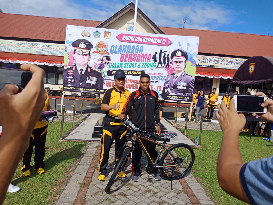 MINUT, VIRALBERITA.NET – Rayakan Hut Bhayangkara ke 73, Polres Minahasa utara menggelar kegiatan olah raga jalan sehat dan Sumba, start dari lapangan Polres Minut menuju perampatan ke arah jalan tol sampai jembatan Tumaluntung dan kebali finis di Mapolres Minut, sabtu 6/7/2019.