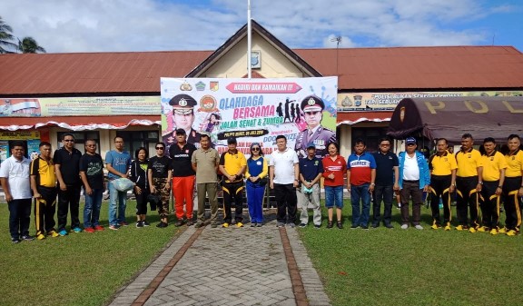 “saat ini kita akan melaksanakan jalan sehat sesuai rute yang ditentukan panitia dan kembali lagi disini kita menikmati berbagai kegiatan ditempat ini. kegiatan ini juga bertujuan untuk membangun tali asi dan sinergitas Polri dengan pemerintah dan masyarakat,” tutur Kapolres.