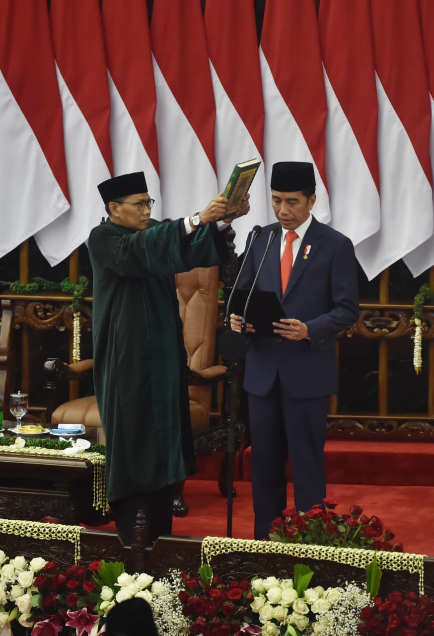 Presiden Joko Widodo dan Wakil Presiden terpilih K.H. Ma’ruf Amin kemudian mengucap sumpah jabatan.