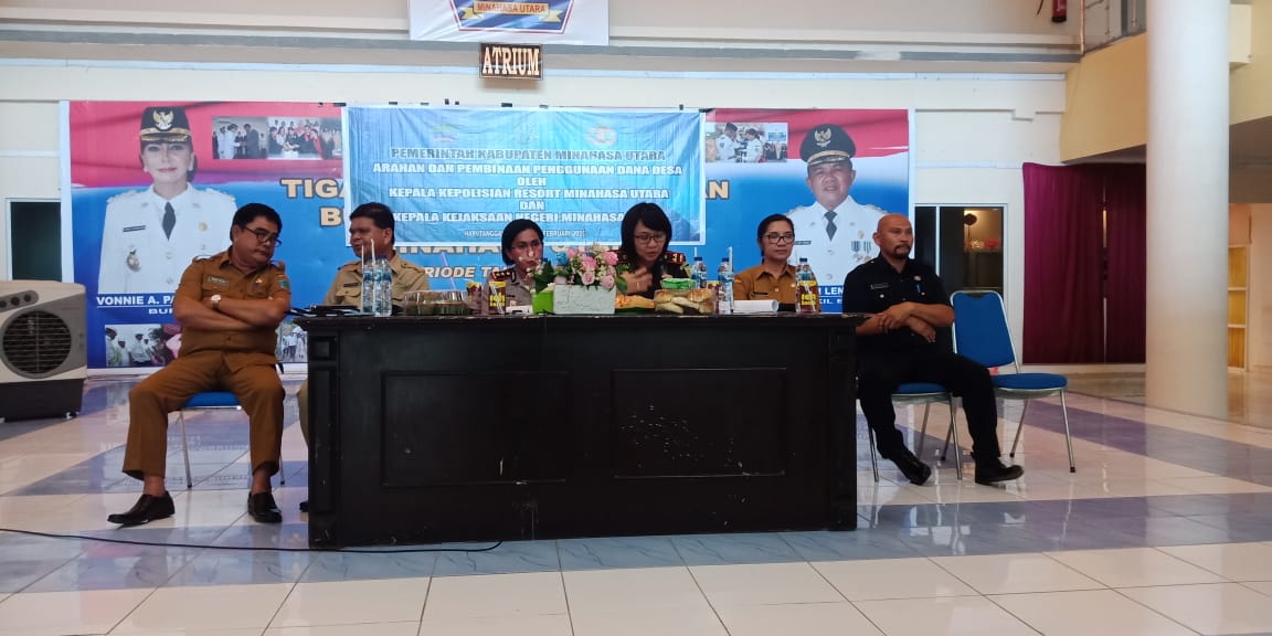 AIRMADIDI, viralberita.net — Dalam meminimalisir penyimpangan pengelolaan dan pemanfaatan dana desa, Pemerintah kabupaten Minahasa utara (Minut) melalui Dinas Pemberdayaan Masyarakat Desa (PMD) menggelar acara arahan dan binaan penggunaan dana desa oleh Kapolres Minut AKBP Grace Rahakbau, SIK.M.Si dan Kajari Minut Fanny Widyastuti SH, MH serta Inspektur Minut Umbase Mayuntu S.Sos kepada para hukum tua  Se-Minut di Atrium kantor Bupati Minut, selasa 11/02/2020.