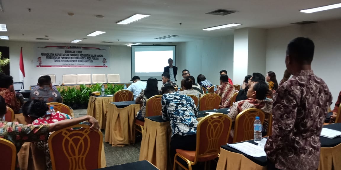 WATUTUMOU II, viralberita.net — Sebagai pengawas Pilkada 2020 dalam memasuki tahapan perekrutan Panwaslu kelurahan/pedesaan, maka Bawaslu Minahasa utara (Minut) melaksanakan Bimbingan teknis (Bimtek) penguatan kapasitas SDM bagi Panwaslu kecamatan selama 3 hari, 17-19 Februari 2020 di hotel Sutan Raja Watutumou 2 kecamatan Kalawat Minut.