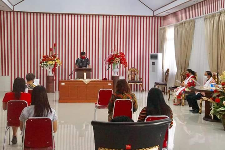 MINAHASA– Minggu pertama di bulan Mei, Bupati Minahasa Pnt. Dr.Ir. Royke Octavian Roring, M.Si, bersama istri, Dra. Fenny Ch M Roring Lumanauw, SIP yang selaku ketua TP PKK Kabupaten Minahasa serta Keluarga, Staf Bupati dan staf Rumah Tangga melaksanakan ibadah Minggu pagi di Rumah dinas Bupati Minahasa Tondano, Minggu (3/5/2020). Ibadah dipimpin oleh Ketua DPD KNPI Minahasa Rifky Johanes Roring.