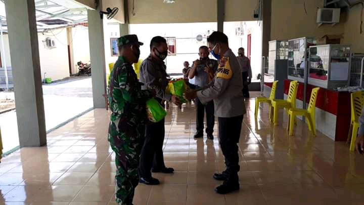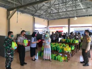 Minsel, ViralBerita.Net- Polres Minahasa Selatan bersama Bhayangkari cabang Minahasa Selatan membagikan bingkisan menyambut hari raya Idul Fitri 1441 Hijriah, yang dikemas dalam paket berisi sembako serta masker, Senin pagi (18/05/2020).