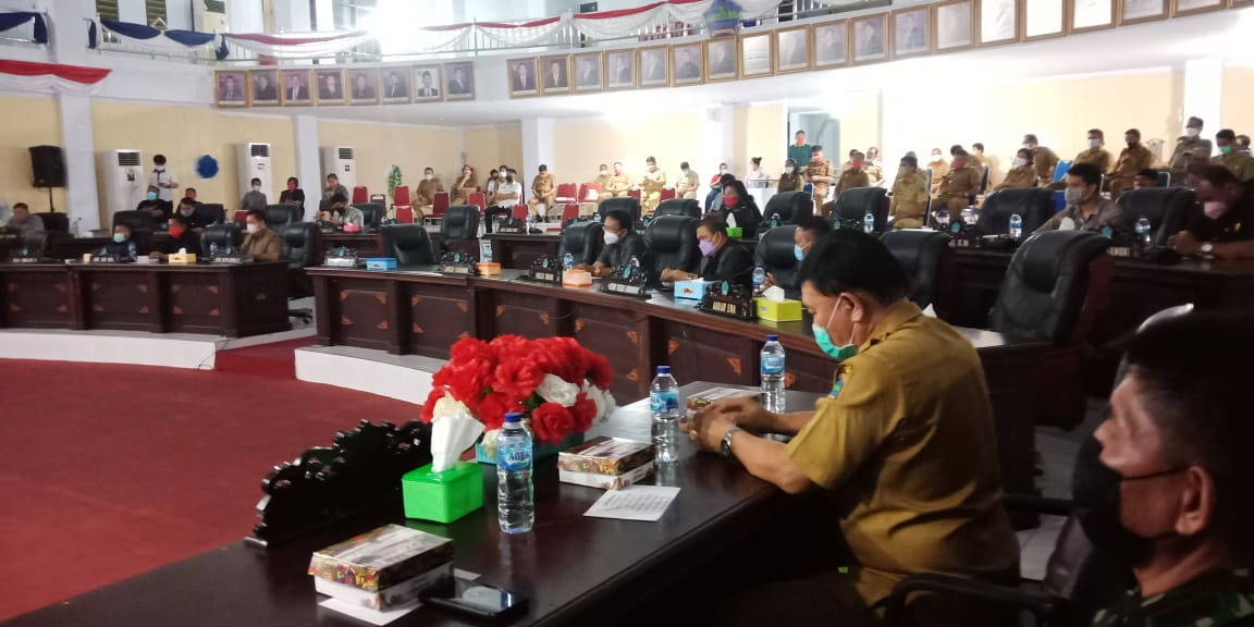 MINUT, VIRALBERITA.NET — Bupati Minajasa utara Joune Ganda, SE dan Wakil Bupati Minahasa utara Kevin Wiliam Lotulung, SH.MH hadiri rapat Paripurna DPRD Kabupaten Minahasa utara (Minut) pembicaraan tingkat II atas rancangan peraturan daerah Kabupaten Minahasa utara tentang penerapan disiplin dan penegakkan hukum protokol kesehatan dan upaya pencegahan dan pengendalian corona virus disease 2019 di Kabupaten Minahasa utara, senin 10 Mei 2021.