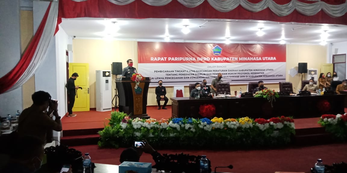 “Kami mrngapresiasi kinerja DPRD Minahasa utara melalui panitia khusus (Pansus) yang telah membahas, memeriksa dan mengoreksi rancangan peraturan daerah pemerintah Kabupaten Minahasa utara tentang penerapan disiplin dan penegakkan hukum protokol kesehatan dan upaya pencegahan dan pengendalian corona virus disease 2019 di Kabupaten Minahasa utara, menjadi penting dan mendesak untuk diterapkan menjadi peeaguran daerah karena akan menjadi payung hukum pemerintah kabupaten Minahasa utara dalam upaya pencegahan dan pengendalian penyebaran covid 19,”ucap Ganda.