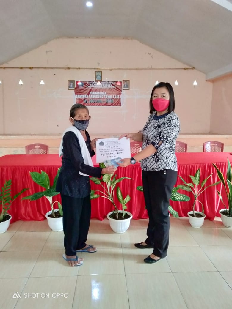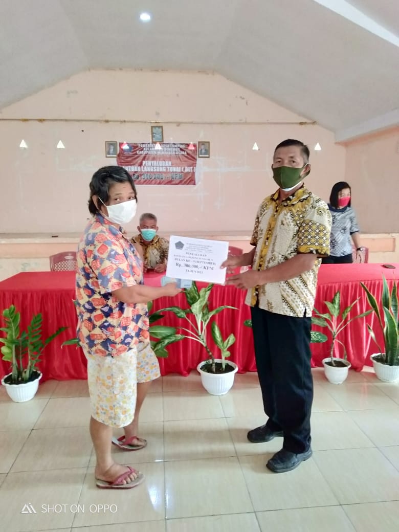 BLT DD disalurkan kepada 60 keluarga penerima manfaat (KPM), dengan jumlah Rp. 300.000/KPM di kantor Desa Lumpias, Kamis 2 September 2021.