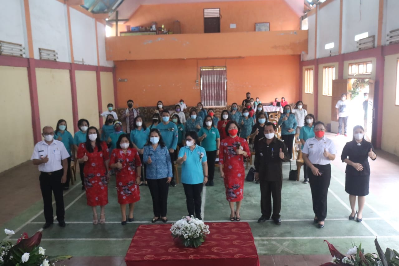 TOMOHON– Ketua TP-PKK Kota Tomohon drg. Jeanne d’arc Senduk-Karundeng menyambut kedatangan tim penilai TP PKK Provinsi Sulut yang akan mengunjungi kelurahan-kelurahan di Kota Tomohon dalam rangka penilaian lomba antar PKK Kabupaten/Kota se-Sulut, Rabu (27/10/2021).