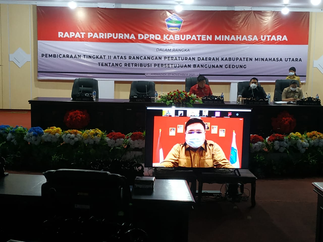 Bupati Minahsa utara dalam pendapat akhirnya mengatakan, berdasarkan pasal 114 angka 1 huruf A undang-undang Nomor 11 tahun 2020 tentang cipta kerja menyatakan bahwa retribusi perizinan terkait dengan retribusi Izin Mendirikan Bangunan (IMB) diubah menjadi retribusi Persetujuan Bangunan Gedung (PBG).