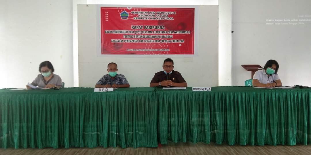 “BPD telah menerima dan menyetujui laporan keterangan pertanggungjawaban dari pemerintah Desa Watutumou II, tentang realisasi dari anggaran pendapatan dan belanja desa/APBDes Watutumou II tahun anggaran 2021,” ucap Bawanda.