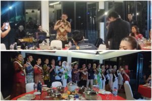 Terlihat, Pnt Joune JE Ganda, SE tanggalkan kasut  ditugaskan membawa bakul perjamuan kudus  berisi roti dan anggur sebagai simbol tubuh dan darah Yesus Kristus yang telah rela berkorban dikayu salib menjadi penebus dosa manusia, dibagikan satu persatu kepada jemaat.
