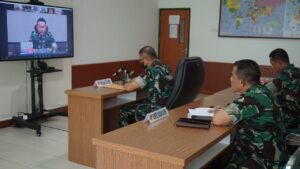 MANADO – KASAD Jenderal TNI Dudung  Abdurachman, S.E., M.A, memimpin video conference (Vicon) bersama Panglima jajaran TNI AD, yang juga diikuti oleh Pangdam XIII/Merdeka, Mayjen TNI A. Denny Tuejeh, Selasa (26/4/2020) di Ruang vicon Makodam XIII/MDK.