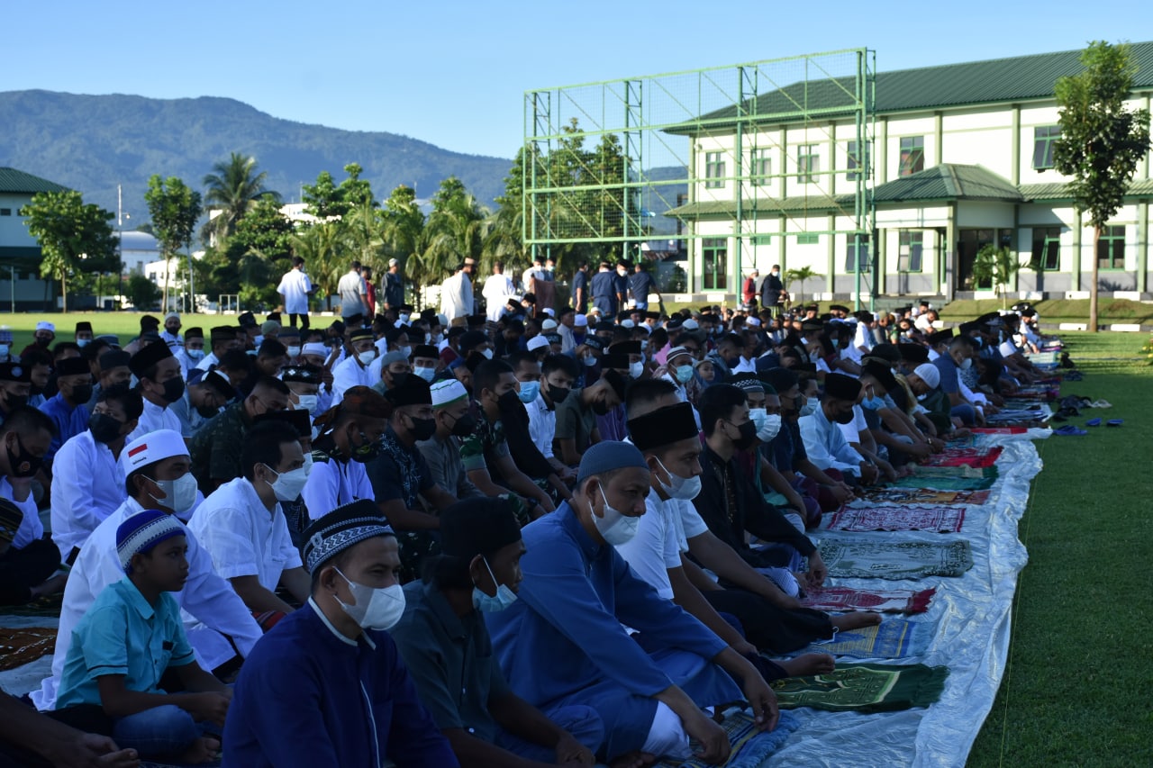 Dalam pelaksanaan shalat Idul Fitri tersebut, Kodam XIII/Merdeka menghadirkan Drs. Ramli Matungkang M.Pdi sebagai Khotib dan Ustazd Hamka Yunus Makapedua sebagai Imam.