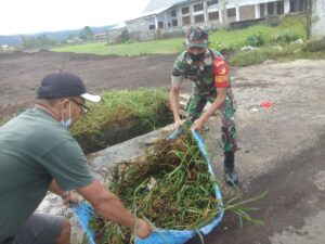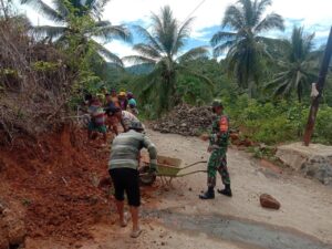 MINSEL – Para Babinsa Jajaran Kodim 1302/Minahasa terus berupaya bekerja bersama-sama dengan masyarakat untuk segera menyelesaikan pembangunan hunian sementara bagi pengungsi korban bencana alam Abrasi pantai Amurang yang berada di Kelurahan Uwuran, Kecamatan Amurang Barat, Kabupaten Minahasa Selatan, Provinsi Sulawesi Utara, Kamis (14/07/2022).
