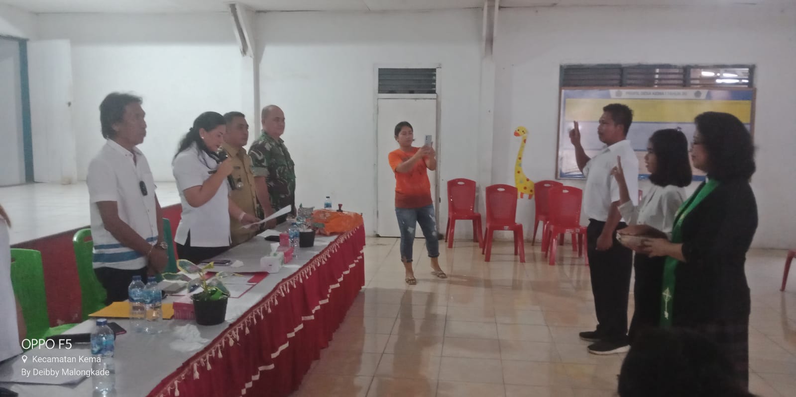 Sertijab dipimpin Sekertaris kecamatan Kema Masye sofie Mekel dihadiri Ketua BPD Desa Kema I Pieters Gosal, tokoh agama, tokoh masyarakat, lembaga desa, para mantan Hukum tua, perangkat desa dan mahasiswa KKN.