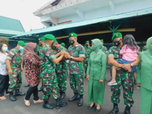 MINAHASA – Personil Komando Distrik Militer (Kodim) 1302/Minahasa melaksanakan olah raga bersama usai pelaksanaan apel pagi, Selasa (26/7/2022).