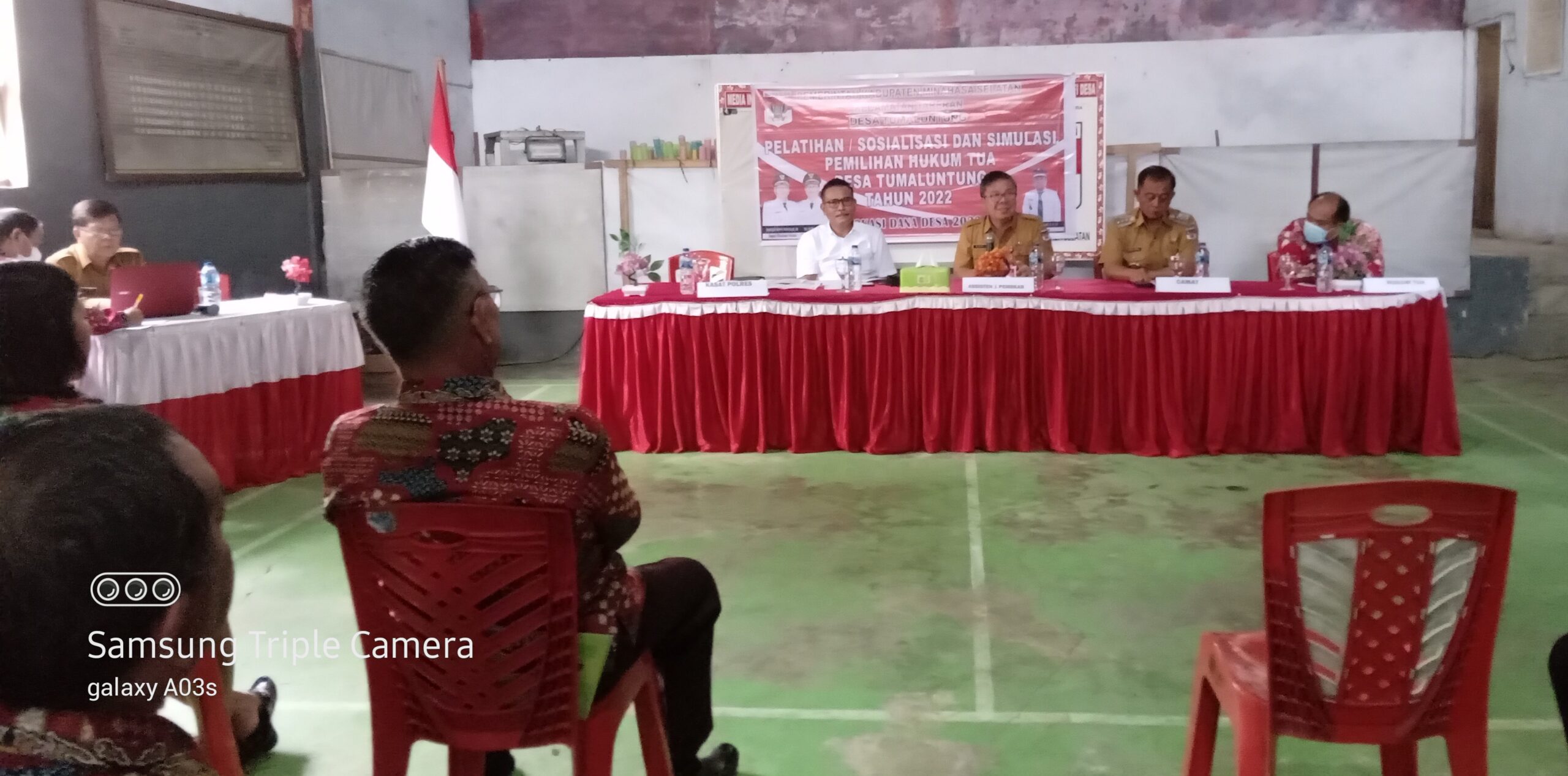 Minsel, viralberita.net- Pemerintah Desa Tumaluntung menggelar Pelatihan, Sosialisasi, dan Simulasi Pemilihan Hukum Tua Desa Tumaluntung Kecamatan Tareran, Kabupaten Minahasa Selatan, bertempat di BPU Kantor Desa Tumpaan, selasa 13/09/2022.