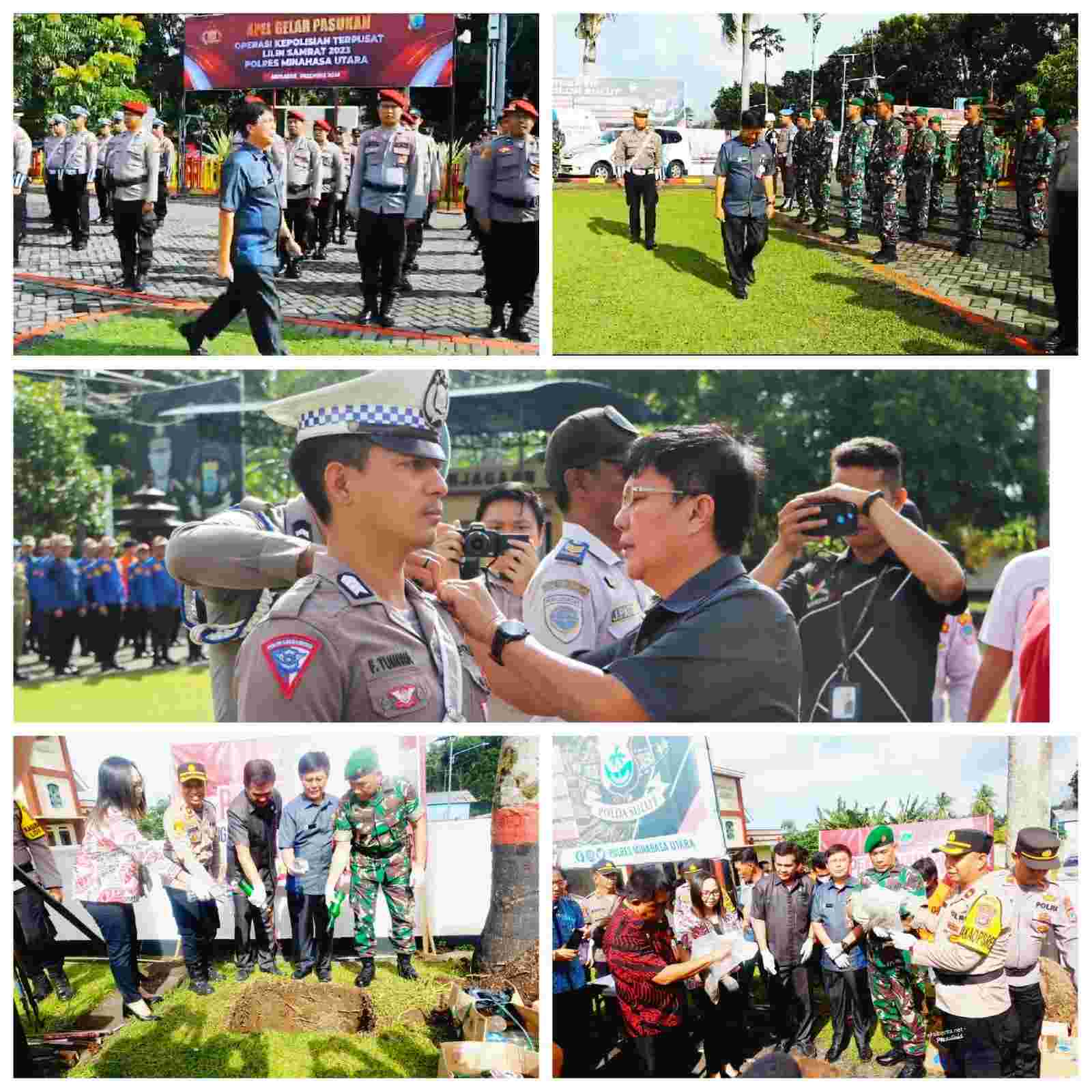 Apel Gelar Pasukan dipimpin Sekda Minut Novly Wowiling dihadiri Pabung Minut Mayor Chb Umboh, Wakapolres Minut Kompol Sugeng Wahyudi Santoso, S.H., S.Ik, Ketua FKUB Minut Pdt. Karundeng, Sth, Wakil ketua dewan Minut Paulus Sundalangi, SE, Asisten 1 Minut Umbase Mayuntu, S.Sos. M.Si. Asisten Manager Trafic Jasa Marga Ilham Maulana Yusuf, Kadis Perhubungan Minut Max Wurarah, SH, Dan sub POM Minut Kapten CPM, Charles Katuuk, Kabid BPBD Hein perengkuan, Sekretaris Sat Pol Pp Minut Marco pela, Para Kapolsek jajaran polres Minut, Para tokoh Agama Minut.