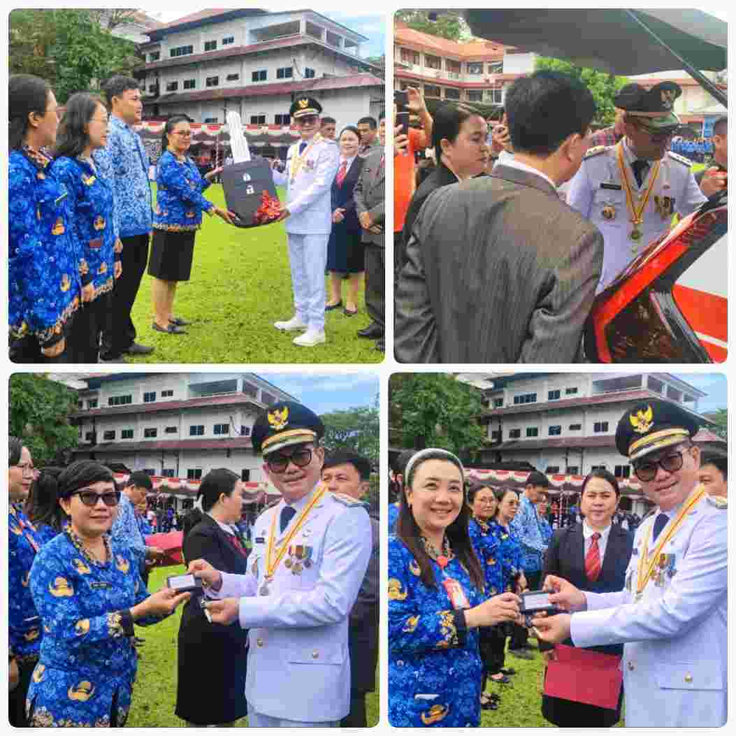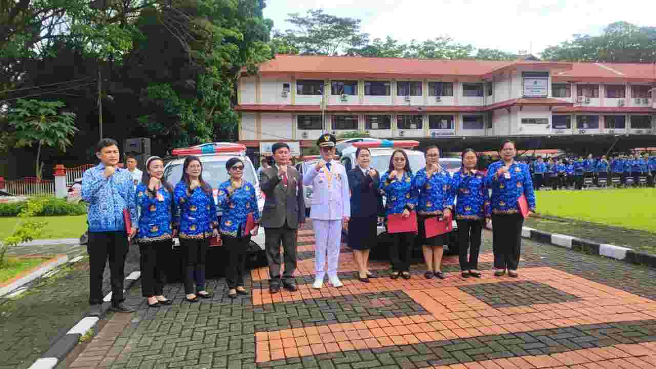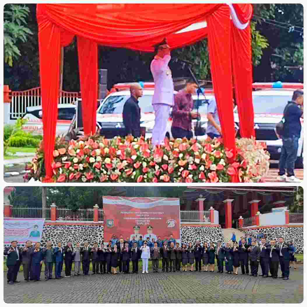 Bupati Joune JE Ganda, SE. MAP. MM. MSi bertindak sebagai inspektur upacara diikuti Sekertaris daerah Ir Novly G Wowiling, MSi para Asisten, Staf Ahli, Staf Khusus, Kepala OPD, Camat, ASN dan THL Kabupaten Minahasa Utara.