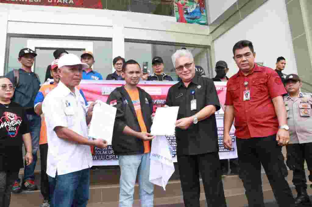 Massa aksi diterima Kepala Bagian Keuangan Sekretariat DPRD Provinsi Sulut, Christian S. H. Purukan SE MAP. Aksi damai ini dikawal aparat kepolisian.