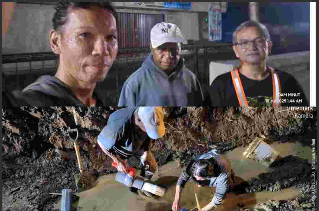 Minut, viralberita.net — Gerak cepat PDAM Kabupaten Minahasa utara dalam Pimpinan Roland Maringka langsung ambil tindakan perbaiki pipa air transmisi yang pecah akibat hantaman Eksafator dari pekerjaan Balai jalan Nasional yang membangun drainase didepan Manado Internasional School (MIS) Desa Kolongan Tetempangan Kecamatan Kalawat Kabupaten Minahasa utara, minggu 13 Juli 2025.
