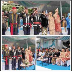 Dalam acara istimewa Provinsi Sulawesi utara ini, Bupati Joune Ganda tampil memukau mengenakan pakaian adat Minahasa Utara berwarna hitam dengan bis perak dan selendang pinggang merah duduk ditempat khususnya para kepala daerah mengikuti seluruh prosesi upacara dengan penuh khidmat.