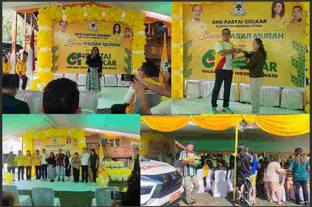 Minut, viralberita.net — Partai Golkar Kabupaten Minahasa Utara (Minut) Provinsi Sulawesi utara lakukan surprise bagi masyarakat dengan menggelar Bazar murah dengan membagi-bagikan secara GRATIS kepada masyarakat. Hal tersebut menuai apresiasi dari Bupati Minahasa Utara (Minut) Joune Ganda.