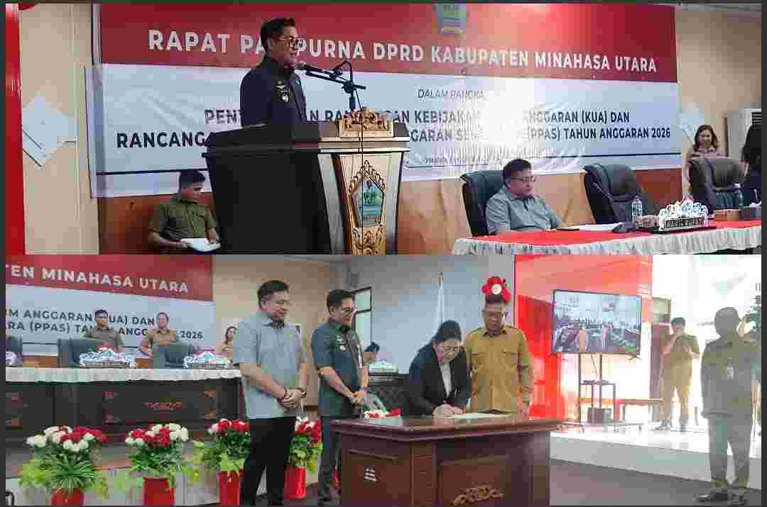 Minut, viralberita.net — DPRD Kabupaten Minahasa Utara (Minut) menggelar rapat paripurna Penyampaian rancangan Kebijakan Umum Anggaran (KUA) dan rancangan Prioritas Plafon Anggaran Sementara (PPAS) Tahun Anggaran (TA) 2026 di Kantor DPRD Tumatenden Minut, selasa 7 Oktober 2026.