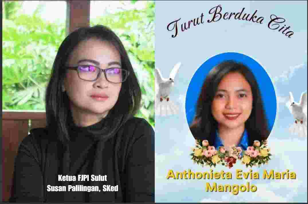 Manado, viralberita.netForum Jurnalis Perempuan Indonesia (FJPI) Sulawesi Utara (Sulut), menyatakan duka cita mendalam, serta keprihatinan luar biasa atas peristiwa memilukan, yang menimpa seorang mahasiswi asal Kabupaten Kepulauan Siau Tagulandang Biaro (Sitaro) yang sedang menuntaskan pendidikan S1 di Program Studi Pendidikan Guru Sekolah Dasar (PGSD) di salah satu Perguruan Tinggi Negeri (PTN) di Universitas Negeri Manado (UNIMA).
