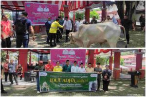 Minut, viralberita.net — Polres Minahasa Utara (Minut) Provinsi Sulawesi utara serahkan hewan Qurban 5 ekor Sapi pada momentum Hari raya Idul Adha