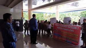 Minut,VIRALBERITA.net-Pembukaan penerimaan CPNS 2018 segera dilaksanakan Pemkab Minut terkait hal itu para tenaga honor kategori 2 (K2) lakukan aksi damai menolak penerimaan