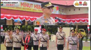 MINUT – Polres Minahasa Utara (Minut) menggelar upacara Serah Terima Jabatan (Sertijab) 3 Pejabat Utama (PJU) yang dipimpin Kapolres Minut AKBP Aulia