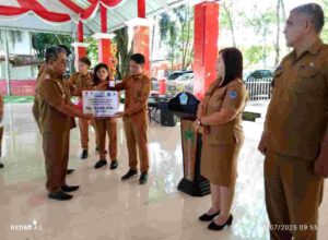 Minut, viralberita.net — Pemerintah Kabupaten Minahasa utara melalui dinas kearsipan menyerahkan hadiah lomba Perpustakaan antar Desa Kelurahan di Pendopo kantor Bupati Minahasa
