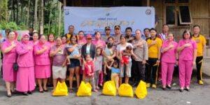 BERBAGI: Tampak Kapolres Ferry Sitorus foto bersama dengan penerima bantuan paket sembako. (Foto Ist) MITRA, VIRALBERITA.NET-Polres Minahasa Tenggara (Mitra) berbagi berkat bagi