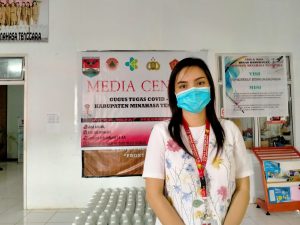 Nampak Juru Bicara Satgas Pananganan Covid-19 Kabupaten Mitra, Gloria Wuwungan saat konfrensi pers. Viralberita.net-Lagi Kabupaten Minahasa Tenggara kembali koleksi Dua pasien terkonfirmasi