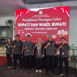 KEBERSAMAAN: foto bersama jajaran KPU usai pengawasan pendaftaran Paslon di hari pertama. Mitra, viralberita.net-Badan Pengawasan Pemilu (Bawaslu) Kabupaten Minahasa Tenggara (Mitra) secara
