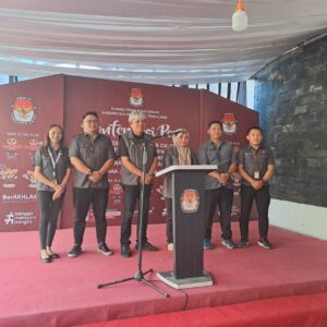 SERIUS: Tampak suasana konferensi pers KPU usai penutupan pendaftaran hari kedua. Mitra, viralberita.net-Komisi Pemilihan Umum (KPU) Minahasa Tenggara (Mitra), pertama menerima pendaftaran