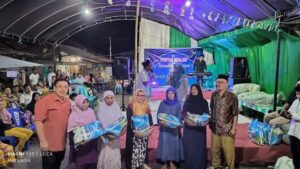 Tampak Tonny Hendrik Lasut saat berbagi talih kasih dengan masyarakat muslim di acara penutupan Cafe Ramadhan. Mitra, viralberita.net-Panitia Cafe Ramadhan Desa Buku