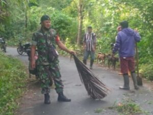 Bersihkan Jalan Penghubung Desa Ranaan dan Desa Toyopon, Dua Babinsa Koramil 1302-17/Motoling Ajak Warga Ikut Karya Bakti