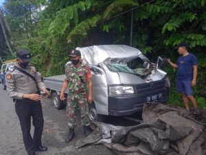MINSEL – Sersan Satu (Sertu) Jandri Weken Babinsa Koramil 1302-17/Motoling bantu pengevakuasian Dua orang korban tumbangnya pohon di ruas jalan Trans yang