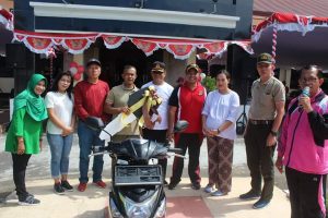 MINSEL- Serda Kusnadi anggota Babinsa Koramil 1302-14/Amurang medapatkan hadiah door prize satu unit sepeda motor matic jenis Honda Beat pada acara