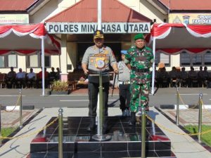 VIRALBERITA.NET – Kapolres Minahasa utara AKBP Jefri Ronald Parulian Siagian, SIK didampingi Pabung Minut Mayor Inf Rich Pusung memimpin apel konsolidasi berakhirnya