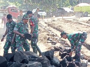MANADO – Satgas Pamtas Yonarmed 19/105 Bogani dari jajaran Kodam XIII/Mdk yang sedang menjalankan tugas menjaga perbatasan RI-Malaysa peduli dengan keadaan masyarakat