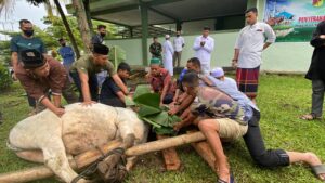 Sholat Idul Adha 1443 H di Lapangan Makodam XIII/Mdk, 3 Ekor Sapi dan 2 Kambing Dikurbankan