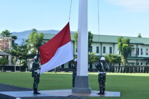 MANADO – Jajaran Kodam XIII/Mdk mengikuti upacara rutin mingguan, yang berlangsung di Lapangan upacara Makodam XIII/Merdeka, Senin (04/07/2022). Upacara bendera ini diikuti
