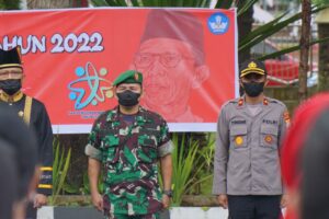 MINAHASA – Kepala Staf Komando Distrik Militer (Kasdim) 1302/Minahasa Mayor Inf Vino Satria Onibala S.Pt, menghadiri upacara Hari Pendidikan Nasional (Hardiknas) bertempat