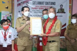 Minsel, viralberita.net- Bertempat di Sekolah Dasar (SD) Inpres Kawangkoan Bawah Bupati Minahasa Selatan Bpk. Franky Donny Wongkar, SH menghadiri Pembukaan Naskah Soal