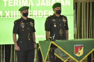 MANADO – Kegiatan Pelaksanaan Laporan Korps Serah Terima Jabatan (Sertijab) Kahubdam XIII/Merdeka, dari Kolonel Chb Frans Lumingkewas, S. Sos, kepada Letkol Chb