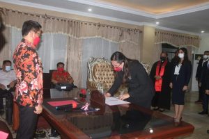 MINUT, VIRALBERITA.NET — Bupati Joune JE Ganda SE melantik pejabat sementara pimpinan Perusahaan Umum Daerah (PUD) Klabat di Kantor Bupati Minahasa utara,