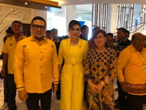 Foto: Tampak Margaretha Lucia Tambani (pakai dress batik) akrab bersama ketua partai Golkar Sulut Tety Paruntu (CEP) AIRMADIDI, viralberita.net — Lucia Margaretha